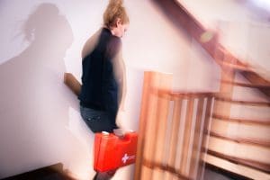 Beeld je in: een technisch defect veroorzaakt een stroomuitval door het hele gebouw. Als ploegleider BHV, gewapend met de kennis uit je e-learning en de praktijk bij ons op locatie, neem je direct de controle. Je coördineert de BHV-ploeg om iedereen veilig te evacueren, zelfs zonder zichtbaar licht. Jouw vermogen om kalm en doeltreffend te handelen, maakt je tot een ankerpunt in een potentieel chaotische situatie.
